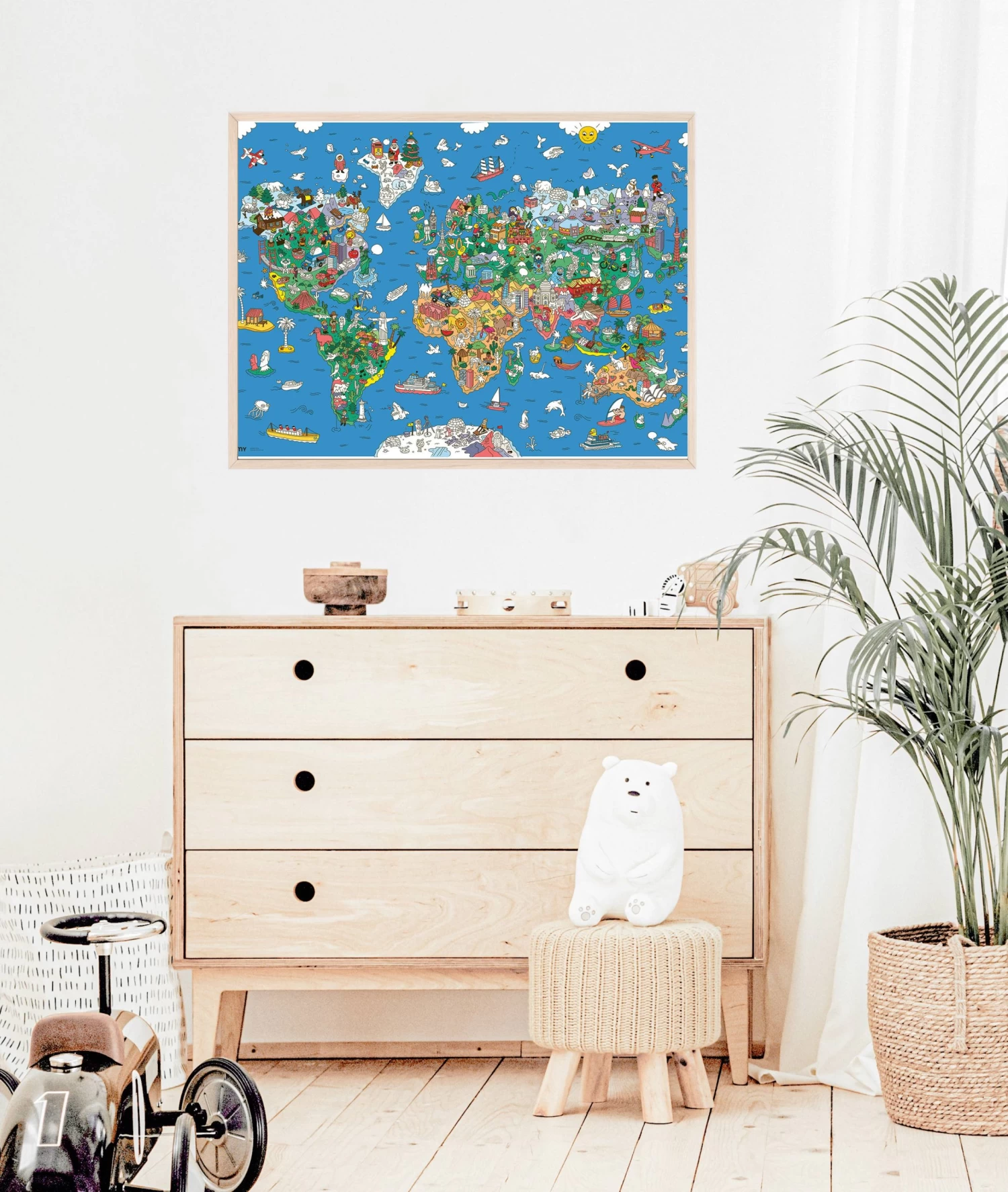 Bring a touch of adventure to any room with the Atlas Poster and Sticker from OMY. Sized at 27.5″ x 39″, this piece is a fun and creative addition to your decor. Perfect for children’s rooms or play areas, it sparks curiosity and invites exploration. The illustrative design, inspired by the world atlas, is filled with witty and quirky details that are sure to make you smile. Made in France and shipped from the USA, OMY ensures the highest quality for their products. Enjoy decorating and learning with OMY’s Atlas Poster and Sticker.