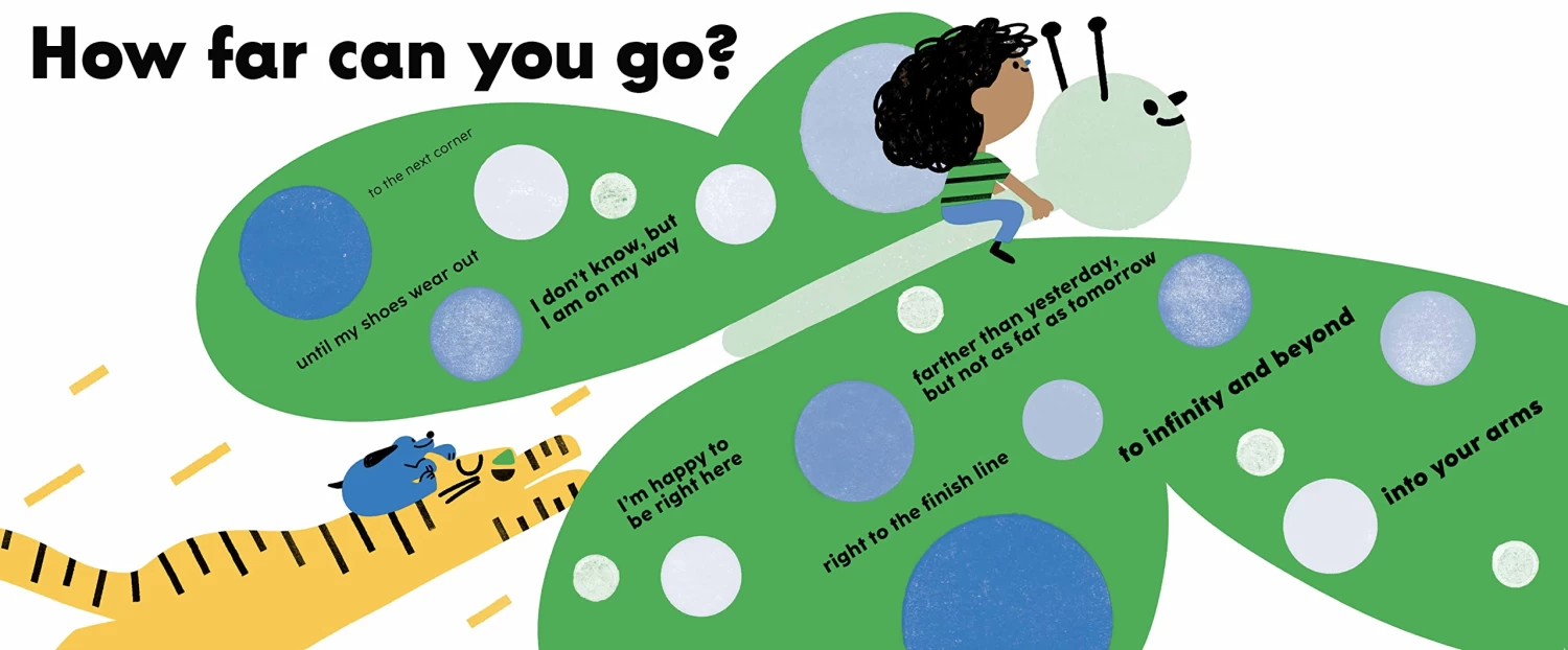 How far can you go? How much do you know? How kind are you? How much do I love you? These are the impossible questions every child has asked, and every parent has struggled to answer. This is a wonderfully affirmative and aspirational book of possibilities and exploration, a fantastic linguistic calibration/celebration of bravery, kindness, love, and so much more. Within this bright and colorful picture book and energetic glossary of words, Rilla Alexander brilliantly succeeds in measuring the immeasurables of life.