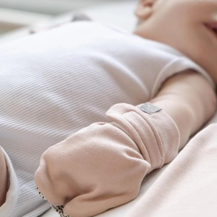 An innovative baby mitt that protects from scratches, boosts brain development, and stays on.
