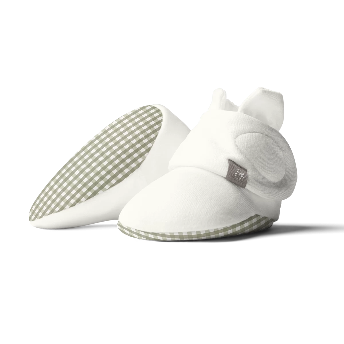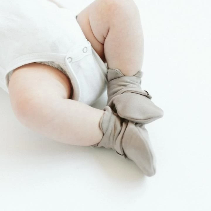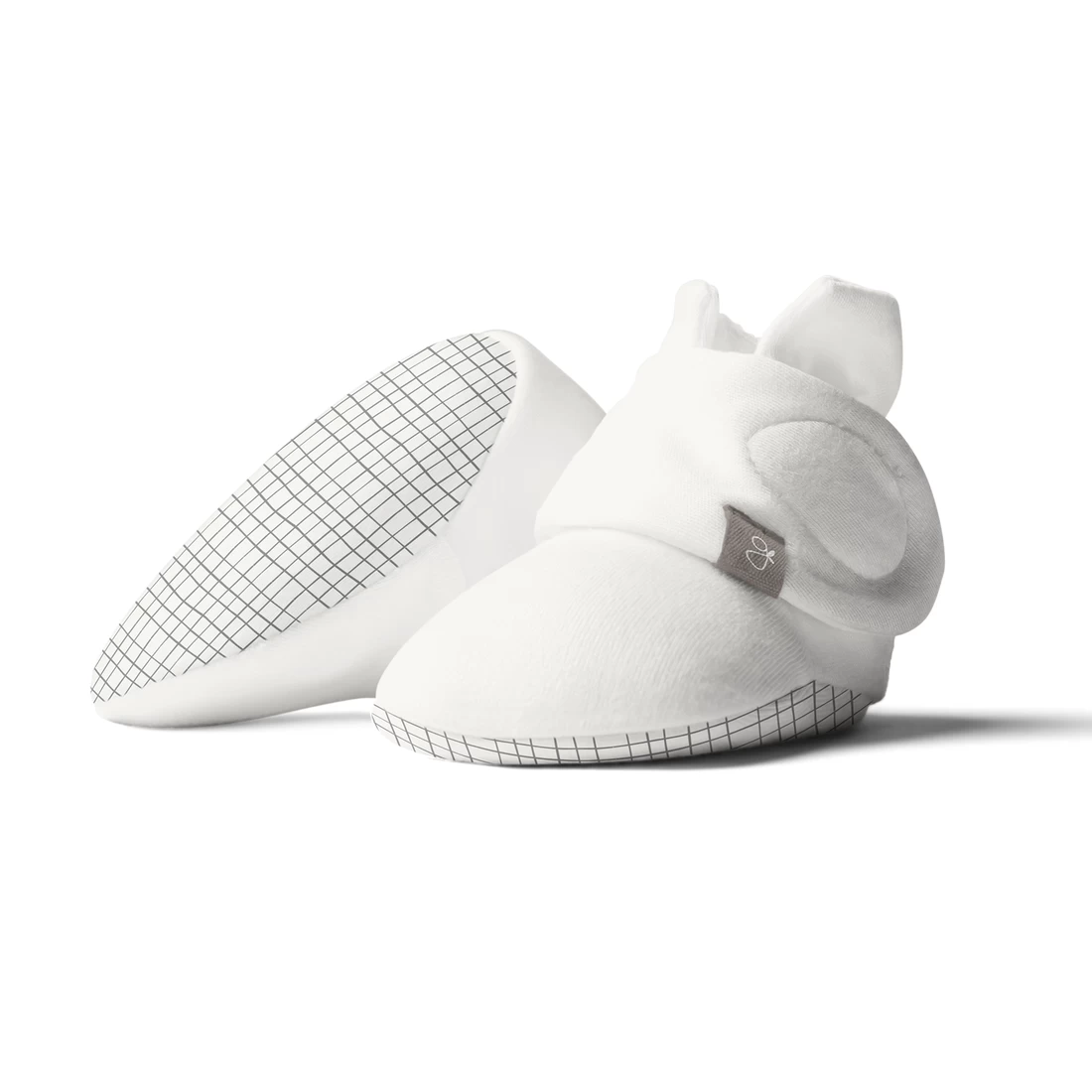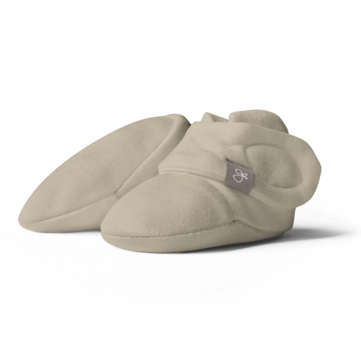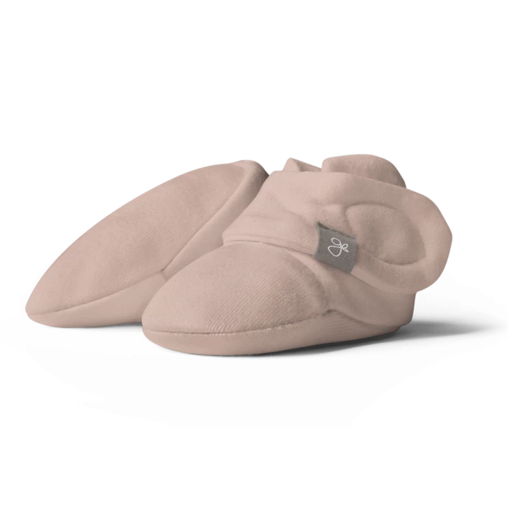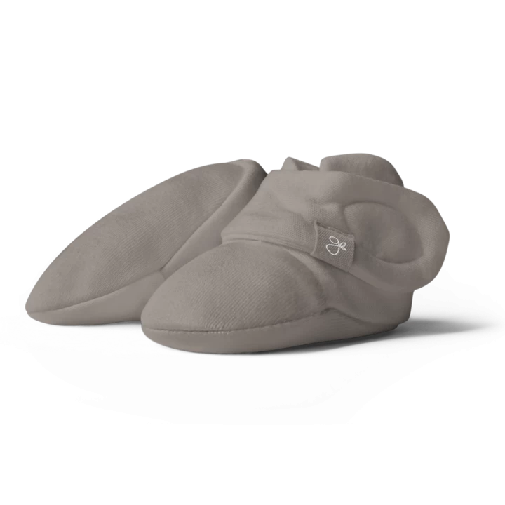 signature two-part closure system remains secure to keep baby’s feet warm and adjusts to fit as baby grows