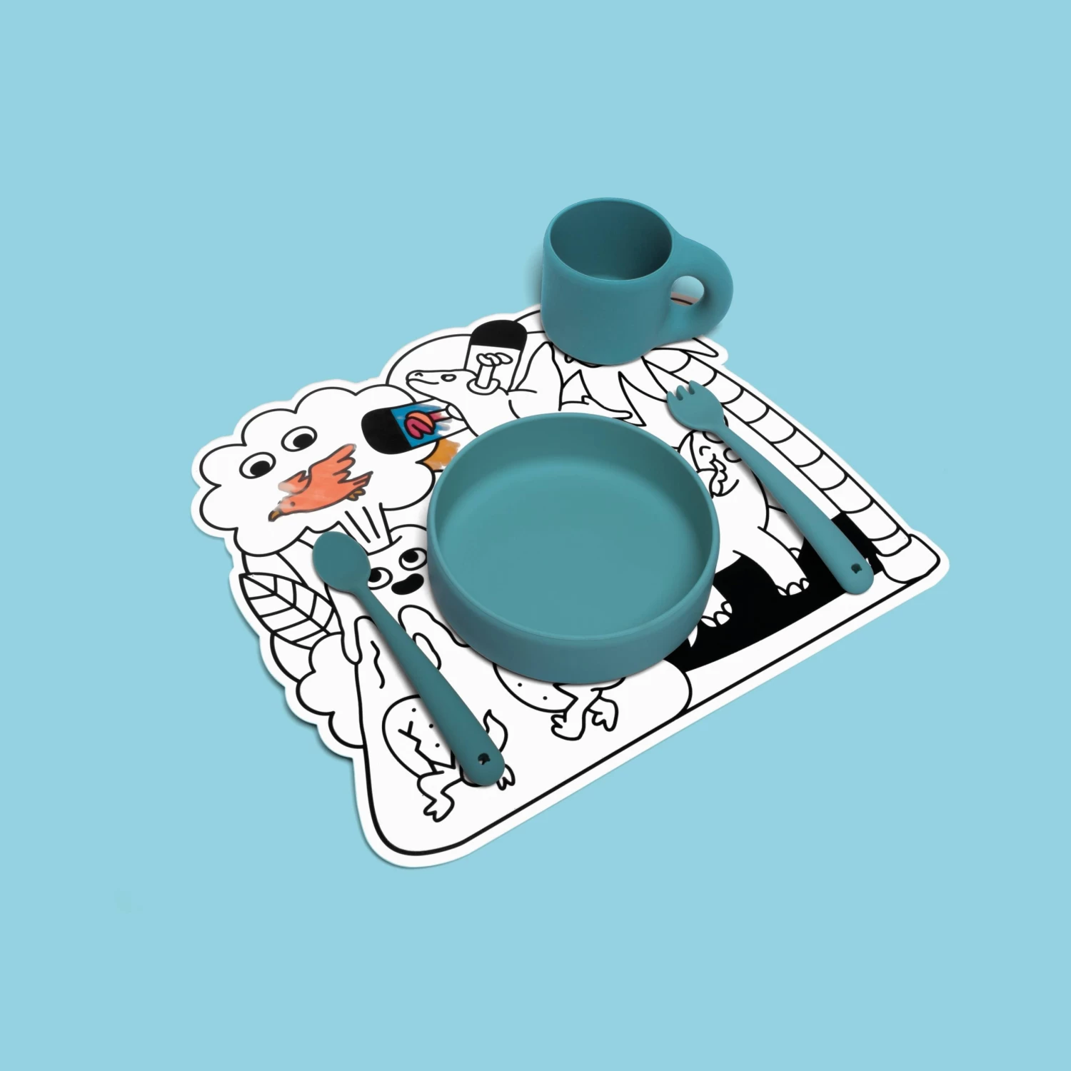 Dinosaurs are joining your table ! The magic water placemats offer a fun and creative experience for little ones. Color with the magic water pen and illustrations will magically appear ! The placemat dries in a few minutes and the colors fade away. When placemat is dry, color it again and again ! FROM 18 MONTHS