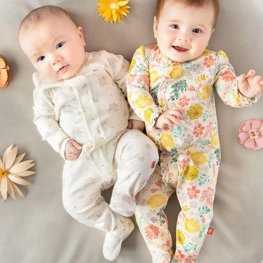our parent favorite footie is an everyday (and night) essential with magnetic closures that make dressing easy. magnets are quick, quiet, and a lifesaver for middle-of-the-night changes. GOTS certified organic cotton makes this baby wardrobe staple silky soft, breathable, and gentle on sensitive skin.