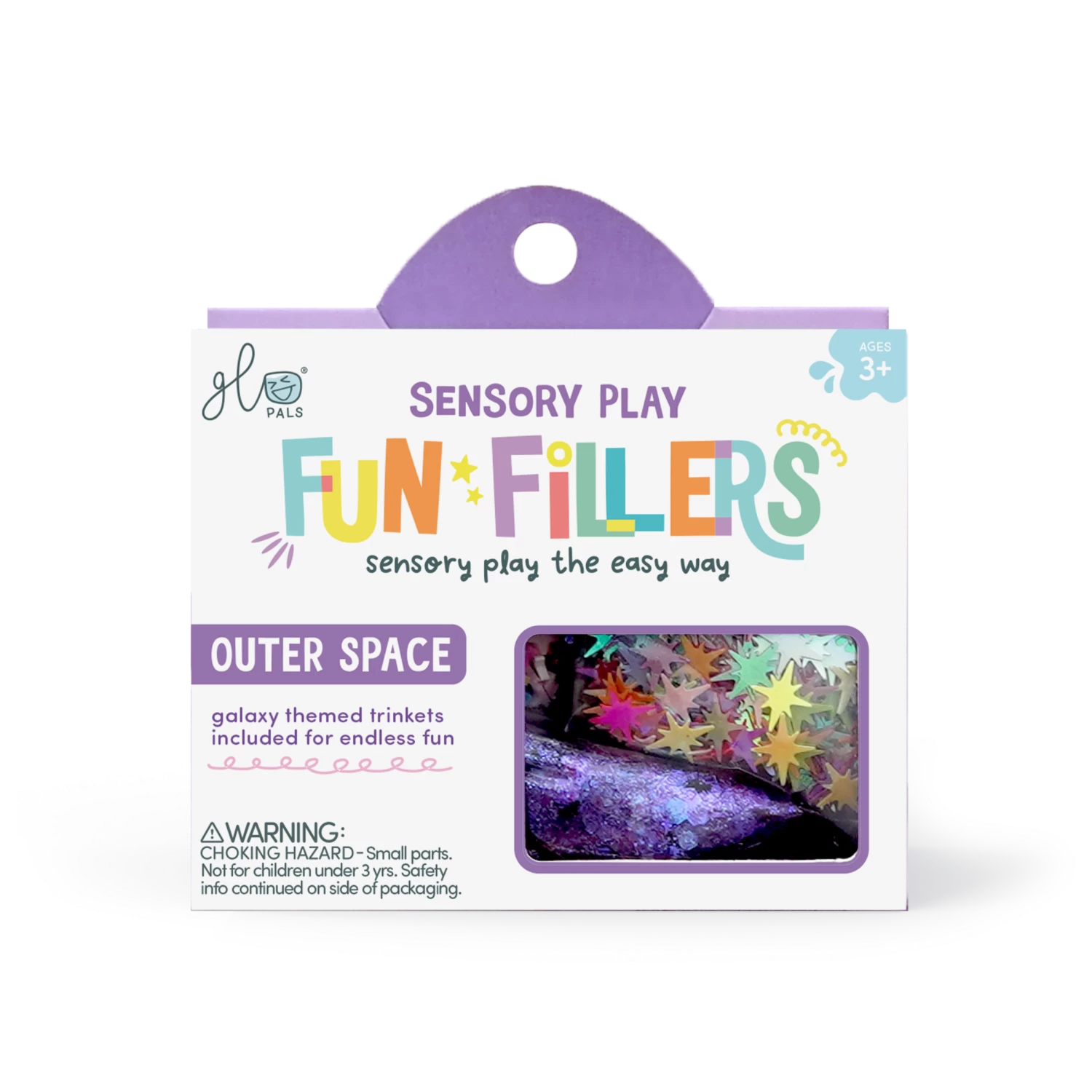 Fun Fillers take the fuss out of curating the perfect sensory play activity! Each pack includes themed sensory accessories that take playtime to the next level! These pair perfectly with our new Sensory Play Jar – or you can use them to enhance your favorite sensory bin. Perfect for water, rice, slime, play-dough and more, Pals!