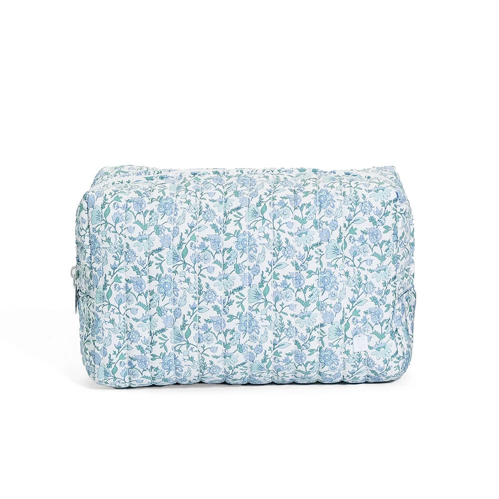 Perfect for Everyday use! This ultimate large, soft, lightweight quilted zippered pouch is ideal for diapers, wipes, toiletries, cosmetics and everything in between. This style is designed to stand on its own and has an interior pocket for smaller needs. Both functional and beautiful, this would be a great addition to any TRVL set and it is wipeable inside and out and machine washable.