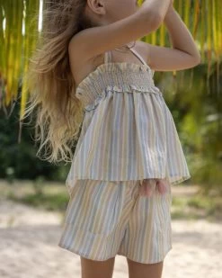 The Roman Shorts are a timeless essential, crafted from a breathable cotton-linen blend in the refreshing Summer Stripe print. Designed for both style and comfort, these shorts feature an elasticated waistband for a flexible fit and a relaxed silhouette for effortless movement. Perfect for warm days, they pair beautifully with blouses, tops, or light layers.