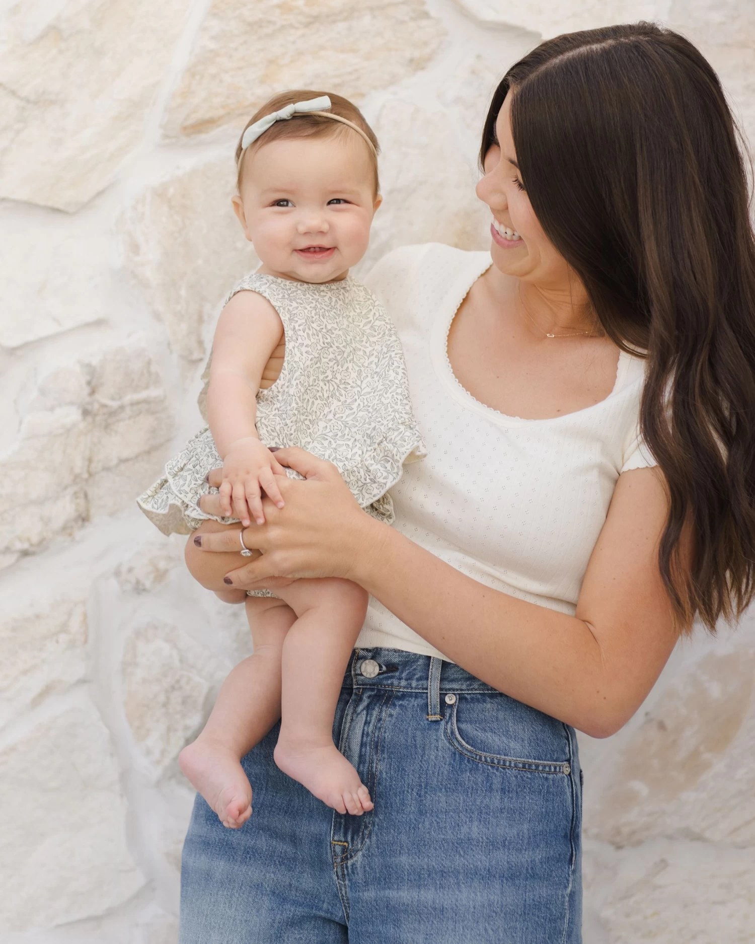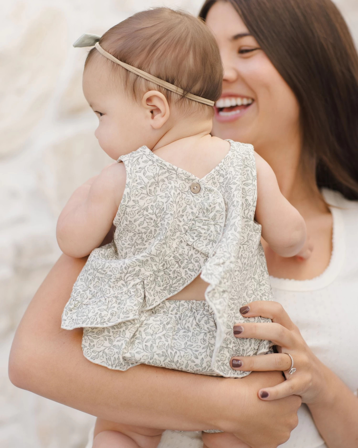 Featuring our ‘green garden’ print on our ‘natural’ hue. Beautiful bunches of florals and greens come together in this sweet garden look.