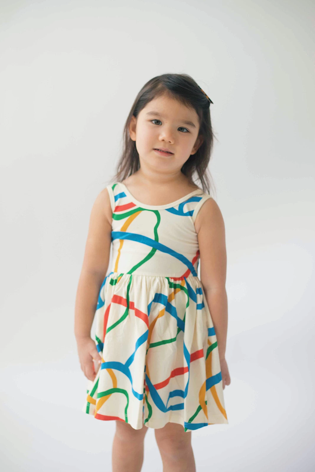Our signature Good Apples dress is made with stretchy-soft organic cotton and features a scooped back, pockets for all their treasures, and a full circle skirt made for twirling.