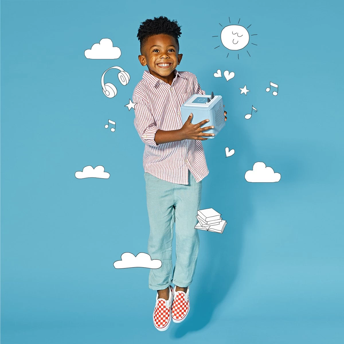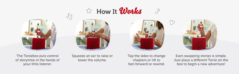 Meet the Toniebox – a new audio system designed for little listeners. Turn it on, pop a Tonie on top and let the audio adventure begin!