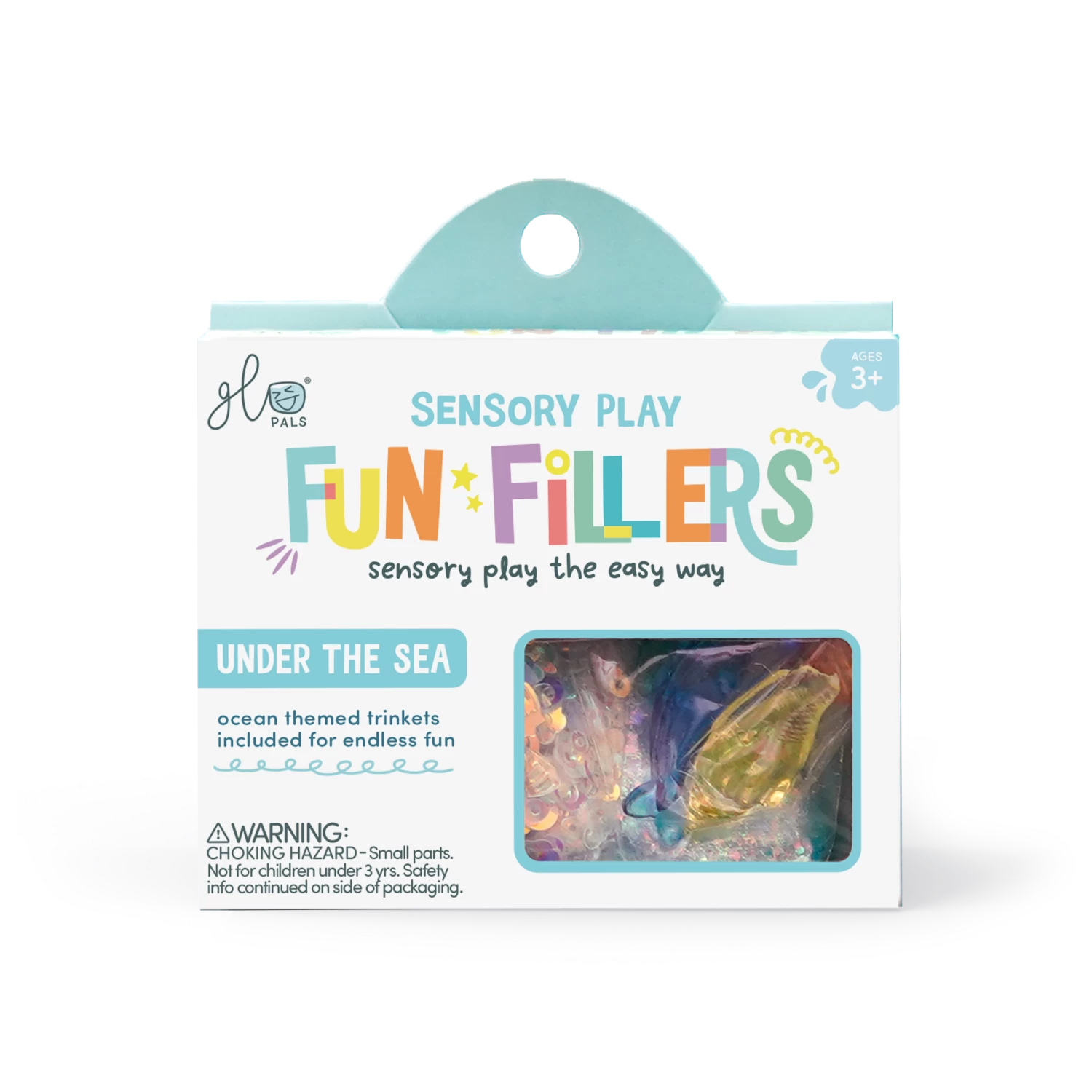Fun Fillers take the fuss out of curating the perfect sensory play activity! Each pack includes themed sensory accessories that take playtime to the next level! These pair perfectly with our new Sensory Play Jar – or you can use them to enhance your favorite sensory bin. Perfect for water, rice, slime, play-dough and more, Pals!
