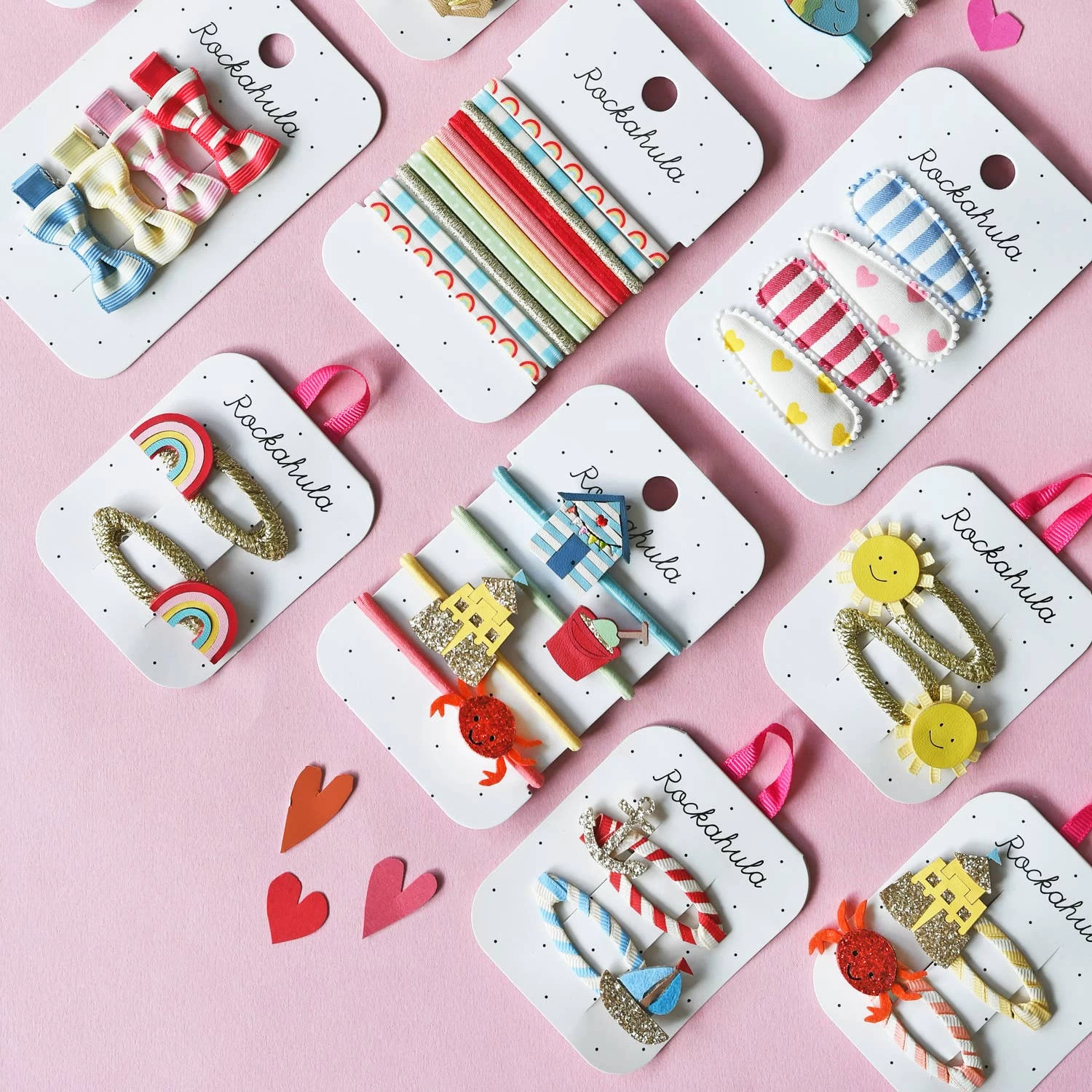 Feel the vintage vibes with these bold and beautiful rainbow clips! Created from a bold rainbow palette, these clips are sat upon gold grosgrain wrapped snap clips.